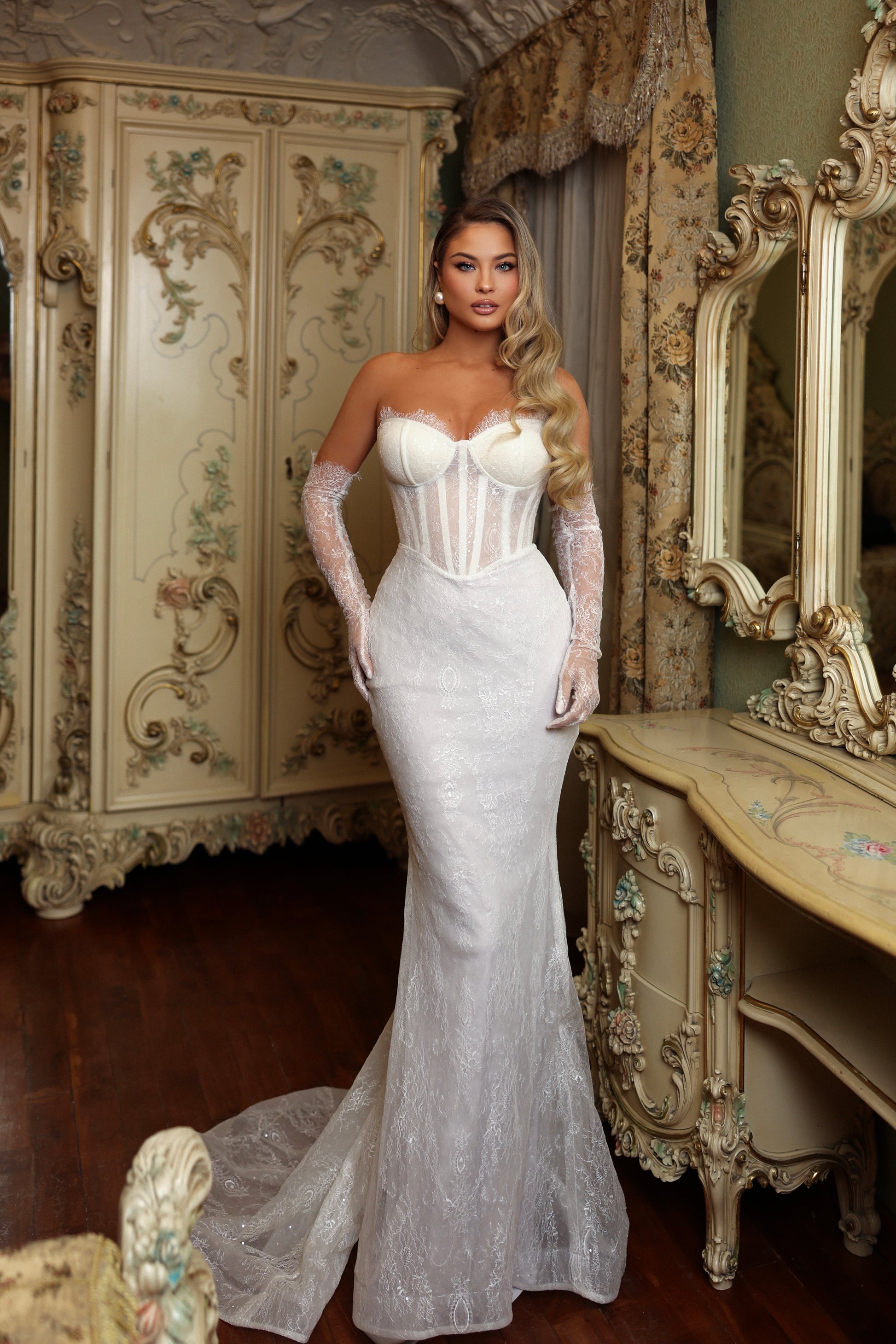 Fabric: french dantel and white tulle mini pearls and crystals.