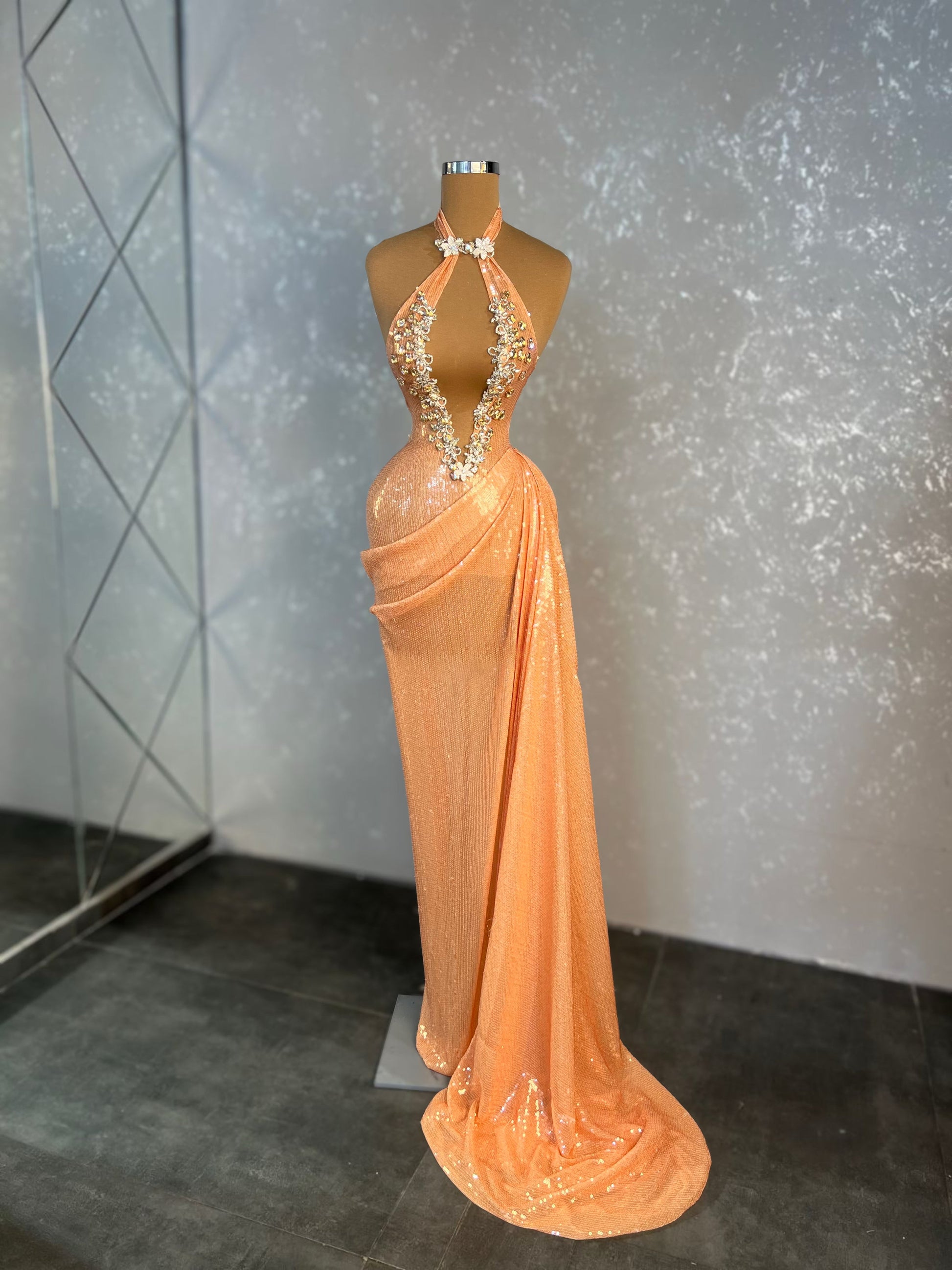 Vibrant and unapologetically bold, this orange sequin dress is a celebration of modern glamour.